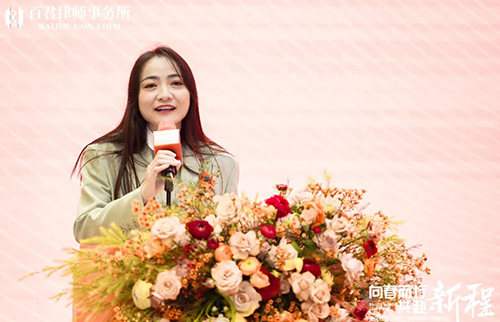 - 在百君25周年庆典上,我为百君成都写下“视所为家、互为倚仗”的话语,是我对百君成都现在的总结,也是对未来的期望。我们都应有三个思想意识问题——合伙人的主人翁意识、全体律师的大局意识,青年律师的成长意识。我们都需要从骨子里去思考自己和律所是什么关系。